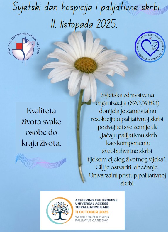 Povodom Svjetskog dana hospicija i palijativne skrbi, koji se obilježava 11. listopada 2025., Društvo za kvalitetu HUMS-a izradilo je prigodni plakat s porukom “Kvaliteta života svake osobe do kraja života”.